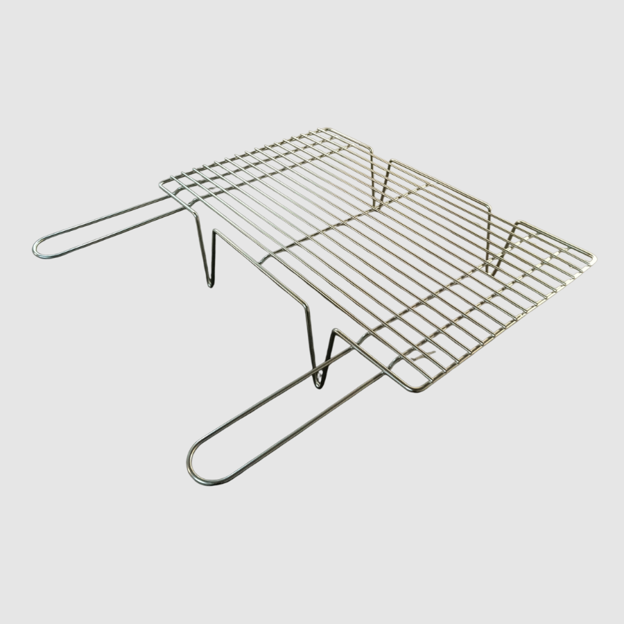 Ανοξείδωτη σχάρα ψησίματος BBQ από υψηλής ποιότητας inox, ιδανική για BBQ grill, ψησταριά κάρβουνου και μπάρμπεκιου εξωτερικού χώρου. Διαθέτει πόδια για σωστή απόσταση από τα κάρβουνα και λαβές για εύκολο και ασφαλές γύρισμα κατά το ψήσιμο.