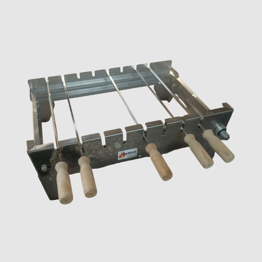 Η ανοξείδωτη κοντοσουβλιέρα με 5 σούβλες είναι ιδανική για ποιοτικό και ομοιόμορφο ψήσιμο στο σπίτι ή σε επαγγελματικό χώρο. Κατασκευασμένη από ανθεκτικό ανοξείδωτο ατσάλι, προσφέρει μεγάλη διάρκεια ζωής και εύκολο καθάρισμα.