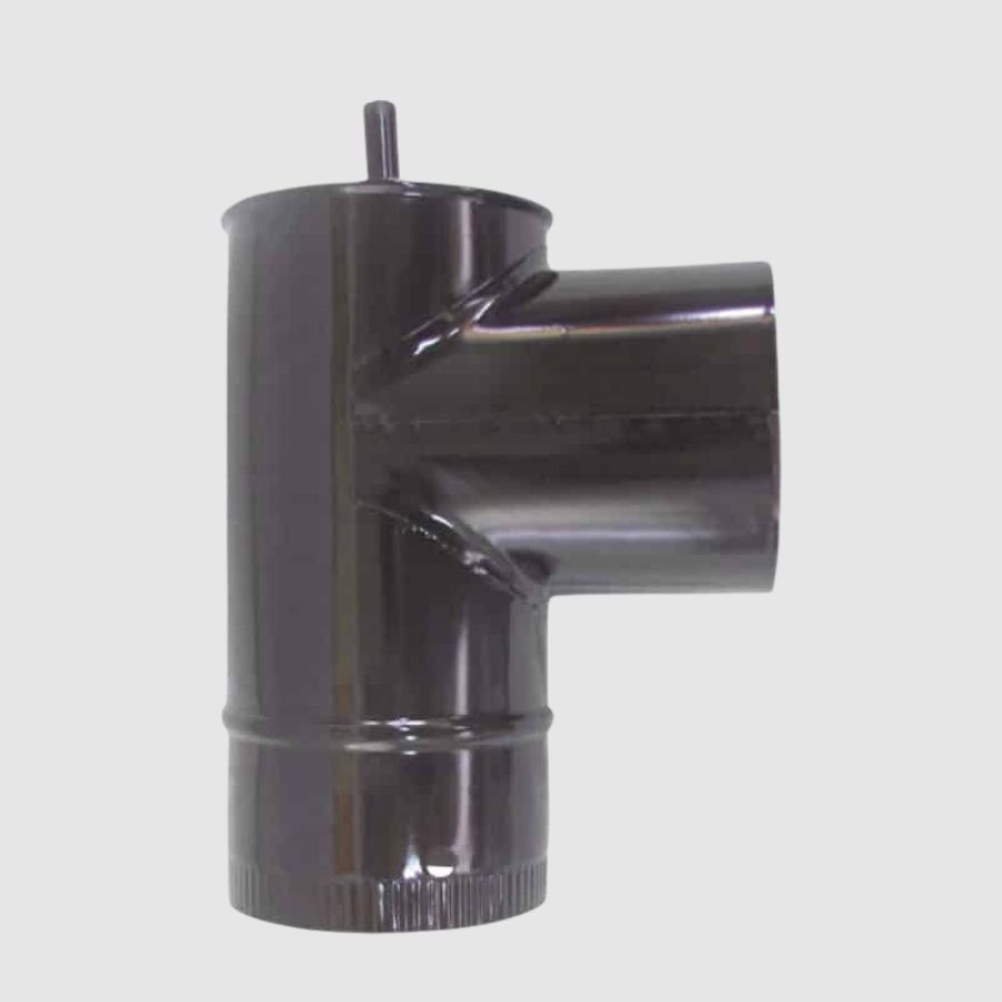 Το Ταφ εμαγιέ μαύρο Φ120 έως Φ150 είναι ένα ευέλικτο και ανθεκτικό εξάρτημα σχεδιασμένο για τη σύνδεση σωλήνων σόμπας σε διάταξη “Τ”. Κατασκευασμένο από υψηλής ποιότητας εμαγιέ υλικό, αντέχει σε υψηλές θερμοκρασίες και εξασφαλίζει μακροχρόνια χρήση. Με δυνατότητα προσαρμογής σε διαμέτρους από Φ120 έως Φ150, παρέχει ευελιξία για διάφορες εγκαταστάσεις. Το μαύρο φινίρισμα προσδίδει κομψότητα και ταιριάζει διακριτικά σε κάθε χώρο, ενώ παράλληλα εξασφαλίζει τη σωστή και ασφαλή διοχέτευση των καυσαερίων. Ιδανική επιλογή για αποδοτική και ασφαλή θέρμανση.